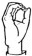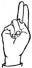 На ћирилици написано МИЛОМИРА АЛУРАЦ састоји се из 14 слова [?]. Исписано ћириличном једноручном азбуком за глувонеме: